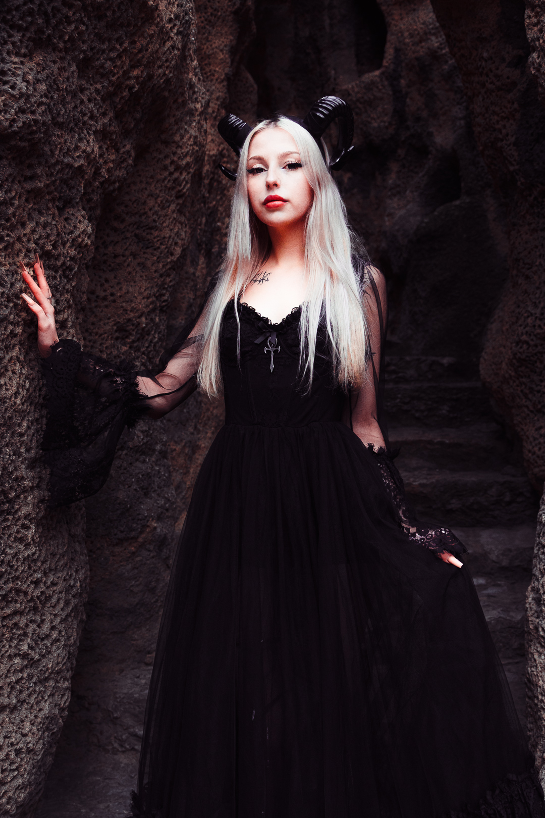 S Veronikou jsme se domluvily na halloweenském focení. Shodly jsme se na outfitu, vybraly lokalitu, přinesly pár rekvizit a zbytek vykrystalizoval na místě.